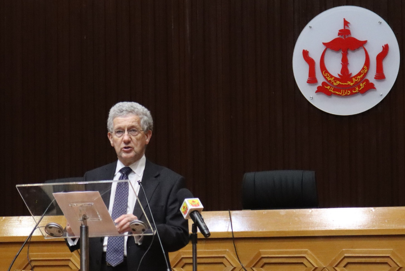 In attendance at the keynote lecture together with the Chief Justice were the Attorney General, Yang Berhormat Datin Seri Paduka Dayang Hajah Nor Hashimah binti Haji Mohammed Taib, Chief Syarie Judge, Yang Amat Arif/Yang Berhormat Pehin Orang Kaya Paduka Seri Utama Dato Paduka Seri Setia Haji Awang Salim bin Haji Besar,e Deputy Minister (Civil Service Governance) at the Prime Minister’s Office, Yang Mulia Dato Seri Paduka Awang Mohd Riza bin Dato Padula Haji Mohd Yunos and the Acting British High Commissioner, Captain Jonathan Caple.
