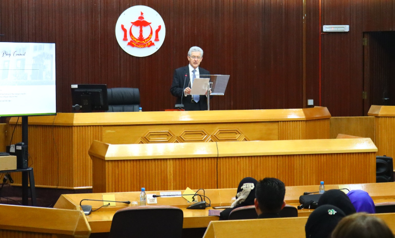 In attendance at the lecture were The Hon. Judicial Commissioner Haji Abdullah Soefri bin POKSM DSP Haji Abidin and The Hon. Judicial Commissioner Muhammed Faisal bin Pehin Datu Juragan Laila Diraja Colonel (Rtd) Dato Seri Pahlawan Haji Kefli.