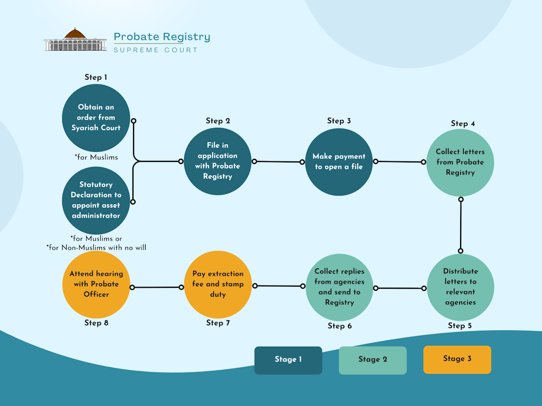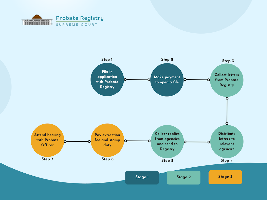 Submit original Will to the Probate Registry for verification. For Muslim individuals with a Will, verification must first be obtained from the Syariah High Court. |