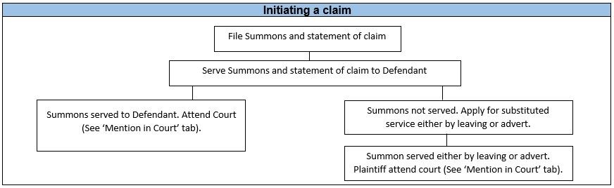 The Writ of Summons and statement of claims have to be handed personally (‘personally service’) to the Defendant. The Summons must be brought to the attention of the Defendant for them to respond.